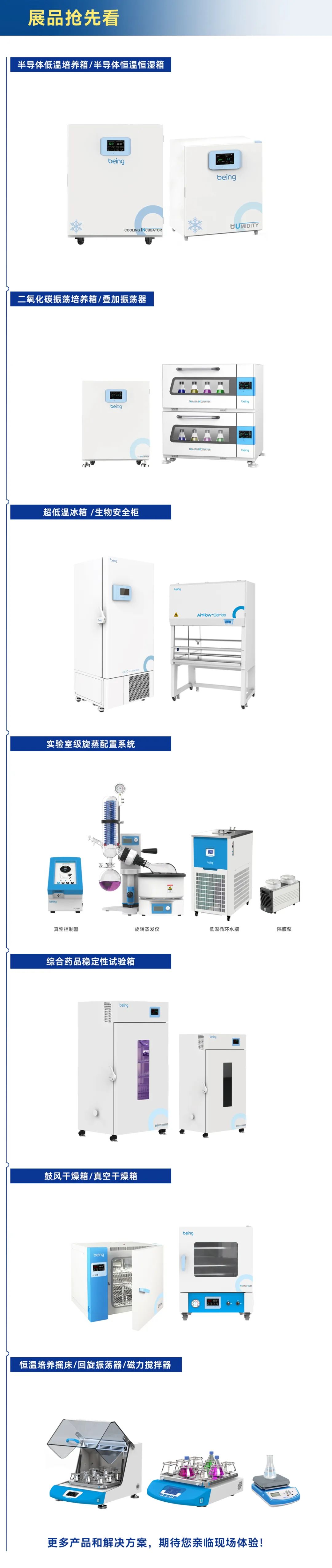 一恒儀器將攜半(bàn)導體低溫培養(yǎng)箱、半導體恒溫恒濕箱、綜合藥品穩(wěn)定性試驗箱、二氧化碳振蕩培養箱、疊加振蕩器、恒溫培養搖(yáo)床、回旋(xuán)振蕩器、磁力攪拌器、鼓風幹燥箱、真空幹燥箱、旋轉蒸發儀、真空控製器(qì)、低溫循環水槽、隔膜泵、生物安全櫃、超低溫冰箱、製冷加熱循環槽、粘度(dù)計等產品和專業解決方(fāng)案亮相本屆展會。