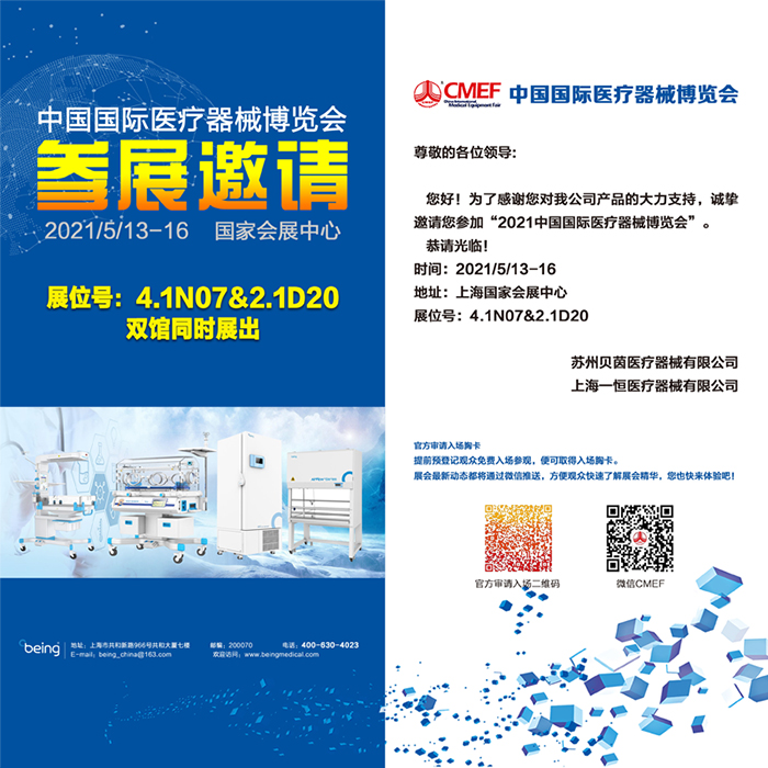 一恒(héng)儀器&貝茵醫療,參展2021.5.13-16 中國國際醫療器械博覽會,國家會展中心,4.1館N07&2.1館D20,雙館同時展出!請(qǐng)各位同仁及領導蒞臨(lín)指導(dǎo)!入館前需實名認證,請提前(qián)掃碼申(shēn)請。