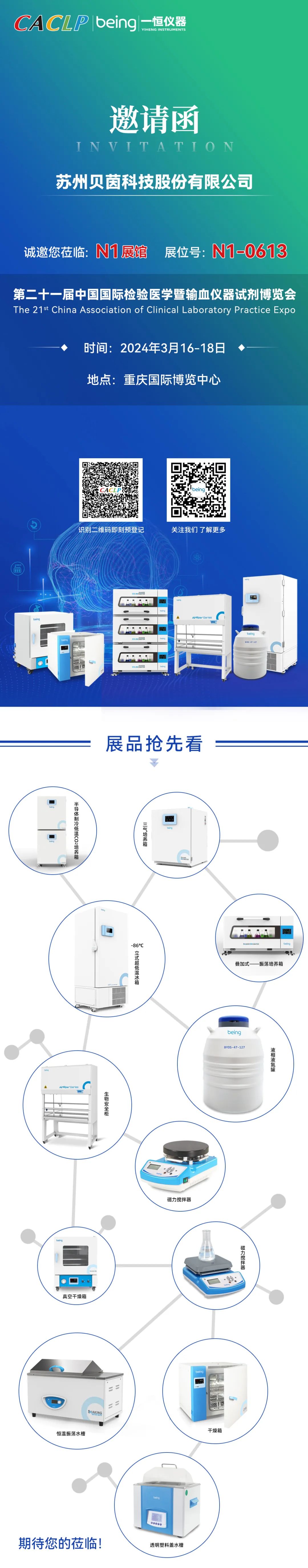 2024-03-13 | 文章來源: | 點(diǎn)擊率: 第二十一屆中國國際檢驗醫學暨(jì)輸血(xuè)儀器試劑(jì)博覽會(CACLP),第四(sì)屆中國國際IVD上遊原材料製造暨流通(tōng)供應鏈博覽會(CISCE)將(jiāng)於2024年3月16日-18日(rì)在(zài)重慶國際博覽中心舉行。貝茵科技將攜多款產品亮相N1-0613展位,誠邀您蒞臨現場,參觀指導,交流合作。