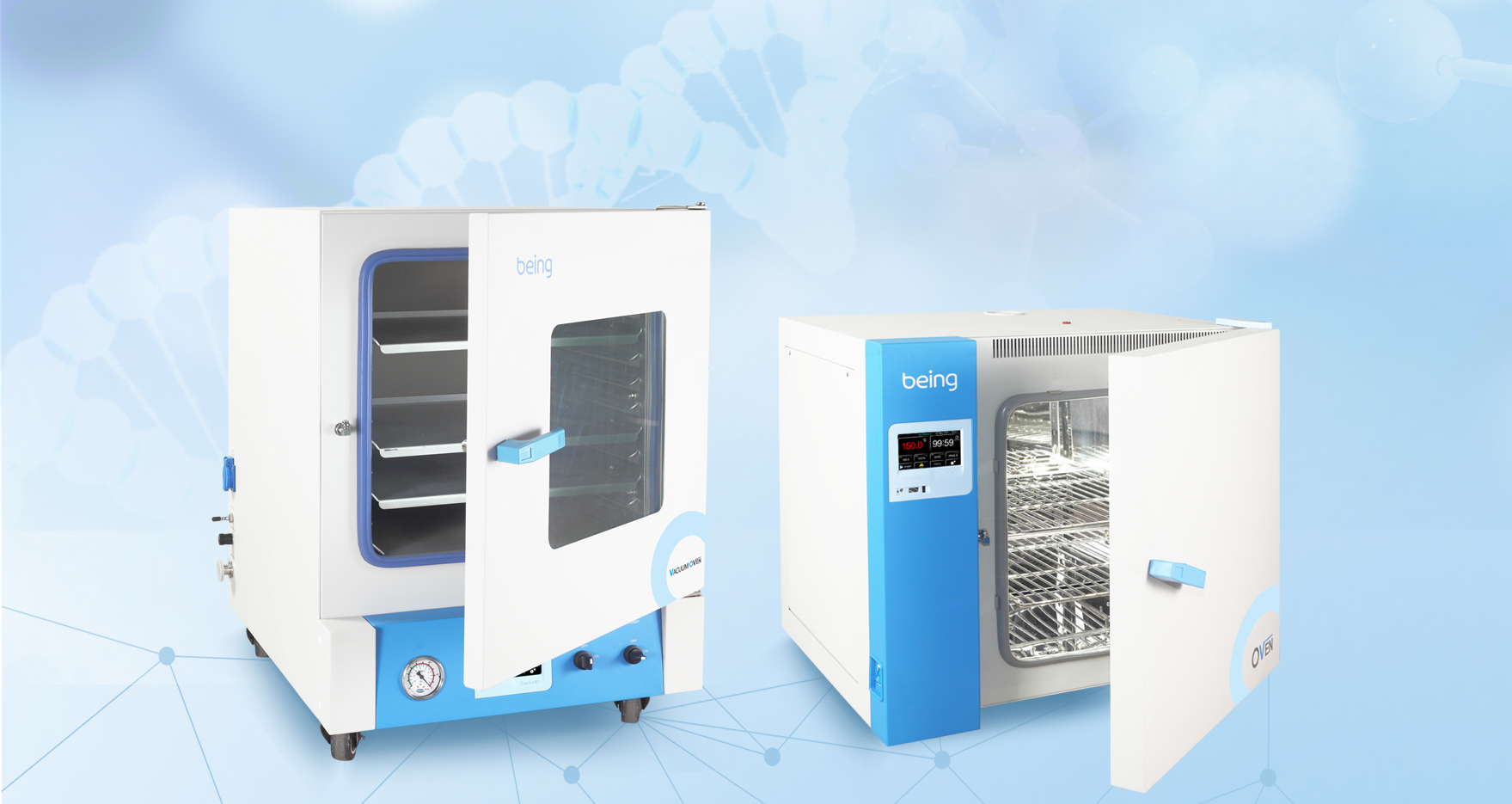 幹燥箱在生物學實驗中應用較廣。如DNA樣品幹燥,把 DNA樣品製備成幹粉狀便(biàn)於存儲或運輸。在DNA提取(qǔ)完畢,並沉澱,把上層無用液體倒(dǎo)掉(diào)後,放在溫(wēn)度設置為60℃-70℃左右的幹(gàn)燥箱中幹燥十多分鍾即可完成。