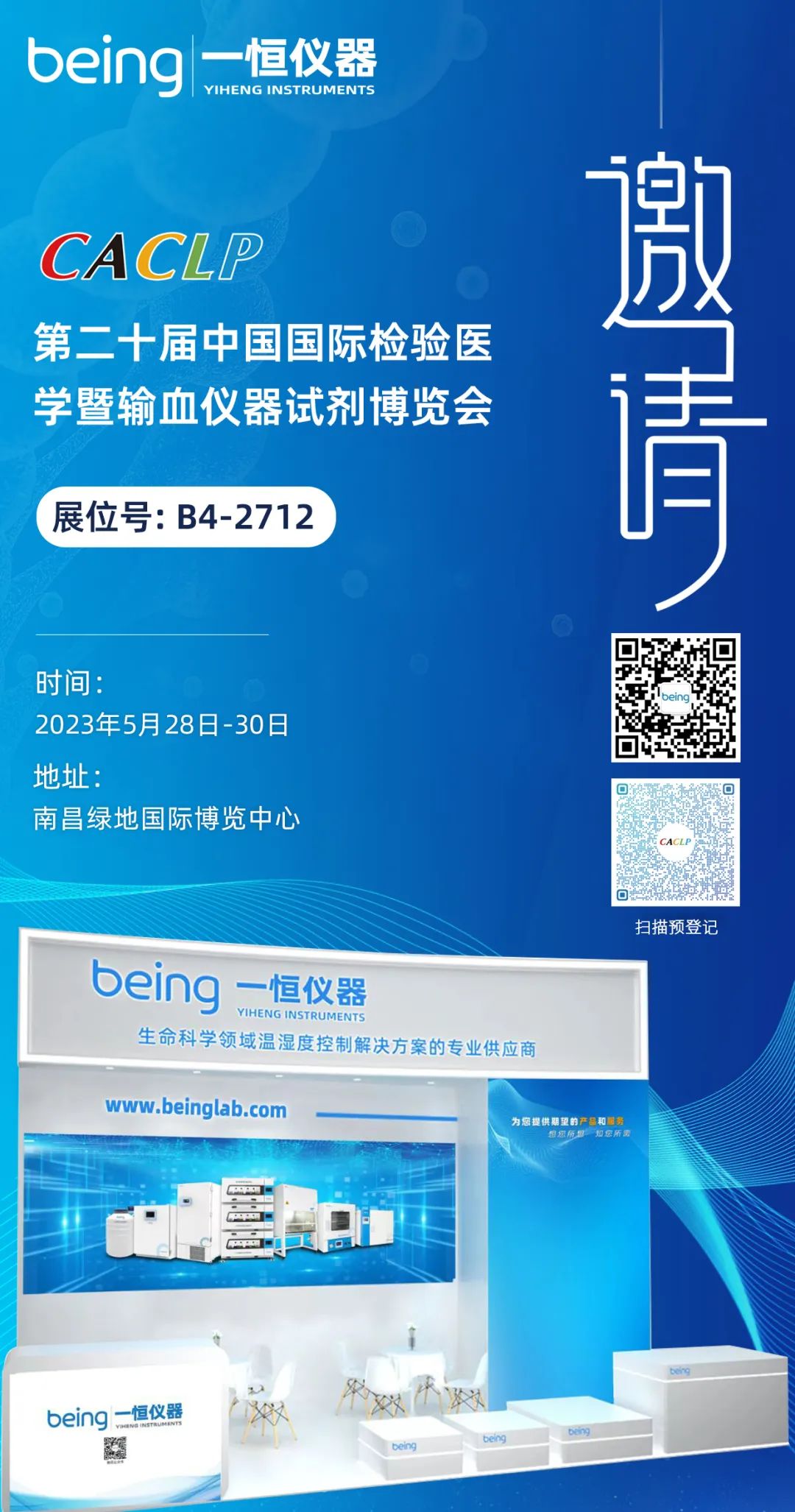 我們誠摯邀請您參加於2023年5月28日(rì)-30日在南昌綠地國際博覽中心舉行的第二十屆中國國際檢驗醫學暨(jì)輸血儀器試劑(jì)博(bó)覽(lǎn)會!