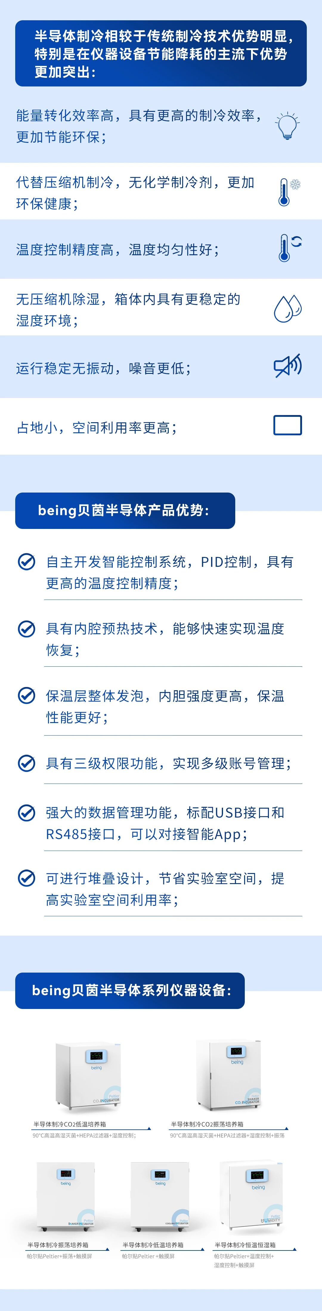 半導體製冷儀器設備利用(yòng)帕爾貼製冷技(jì)術,實現對培養箱的低(dī)溫控製、濕度(dù)控製、氣體濃度控製(zhì)、光照控製(zhì)等,同時(shí)具有加熱和製冷功(gōng)能,是需要(yào)低溫環境的細胞、細菌、微生物(wù)培(péi)養以及樣品存儲、植物栽培、生物育種、分子生物學研究中(zhōng)理想的恒溫設備。