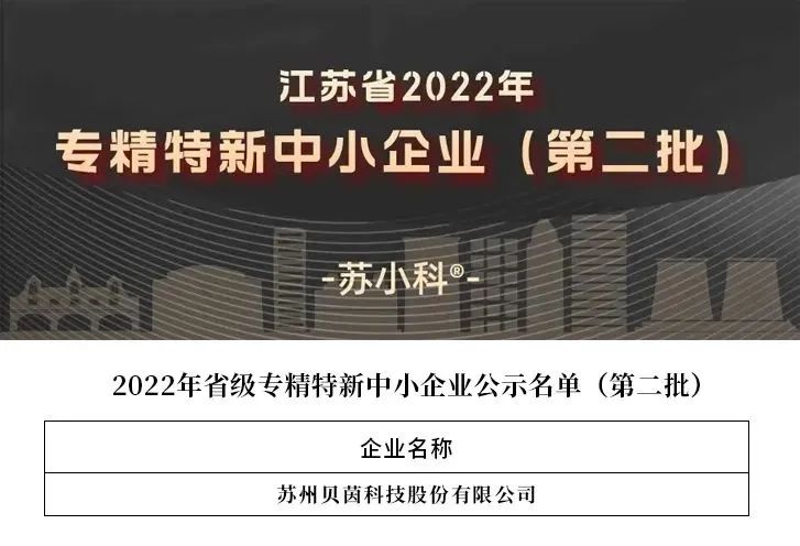 為深入貫(guàn)徹黨中央、國(guó)務院和省委(wěi)、省政府關於加(jiā)快培育專精特新中小企業的決策部署,根據工業和信息化部《優質中小企業梯度培育管理暫行辦法》,江蘇省工信廳組織開展了2022年度省級專精特新中小企業申報認定,已按(àn)規定和程序完成相關審核,公示了通過審核的(de)企業名單,蘇州(zhōu)貝茵科技股份有限公司榜(bǎng)上有名。