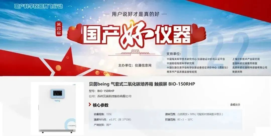 貝茵being二(èr)氧化碳培(péi)養(yǎng)箱BIO-150RHP實力入選第(dì)四屆“國產好儀器(qì)”!