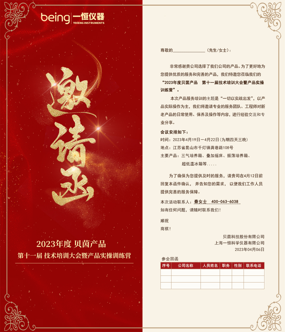 2023-04-11  |  文章來源:  |  點擊率(lǜ): 誠邀您參加2023年度貝茵產品(pǐn)第十一屆技術培訓大會暨產品實操訓(xùn)練營